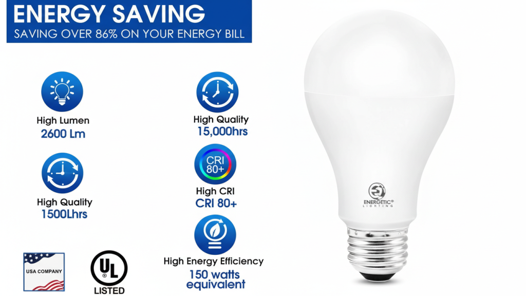 5) Energetic LED Bulbs 150 Watt Equivalent, 2600LM Super Bright Light Bulbs, Daylight 5000K, Dimmable A21 LED Bulb, E26…
